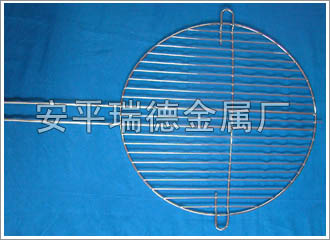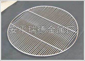 瑞德圆形烧烤网材质个工艺:以优质不锈钢丝、低碳钢丝、铁丝等金属线材,机械设备编织或高压数控焊接而成后、再加工成圆形的网后再加框,加边处理后就成了烧烤网。